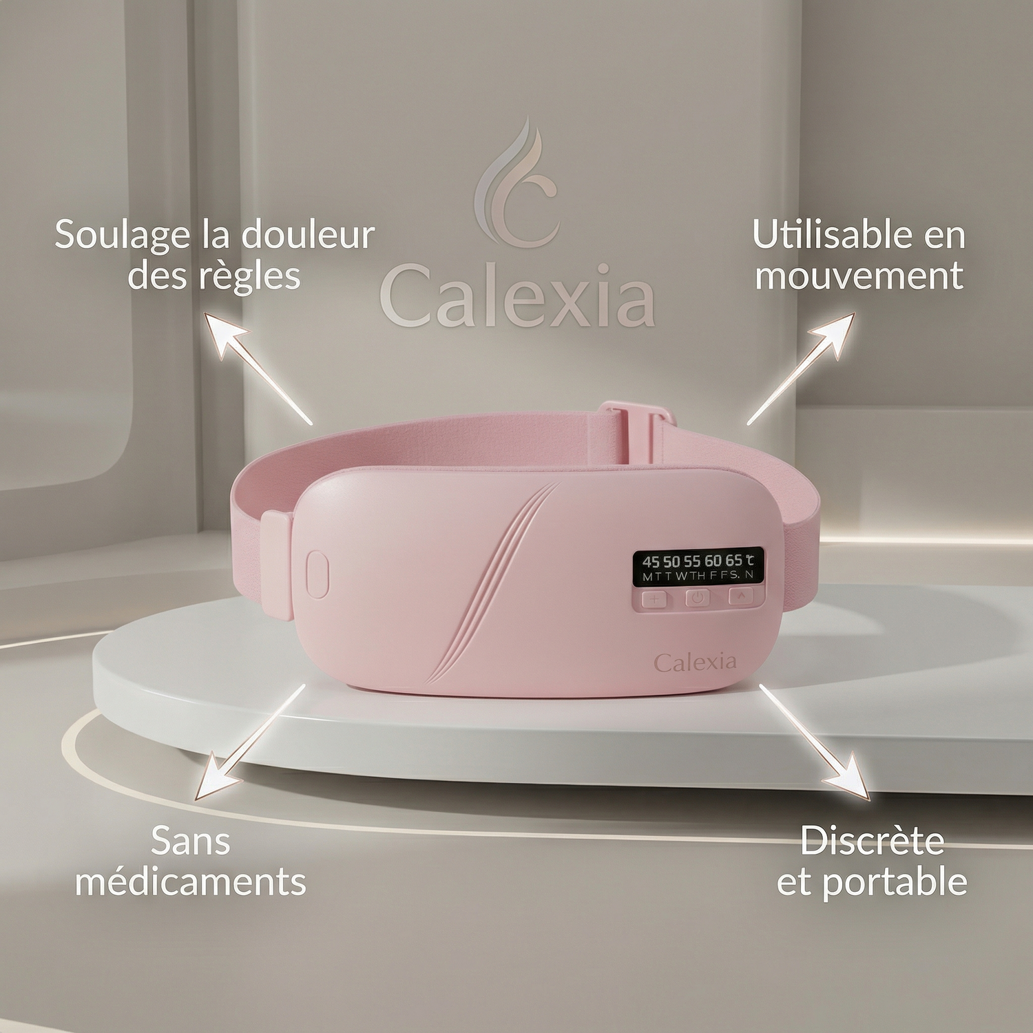 Calexia diffuse une chaleur douce et apaisante, sans médicaments, pour accompagner la période des règles avec plus de sérénité, de confort et de bienveillance envers soi-même.